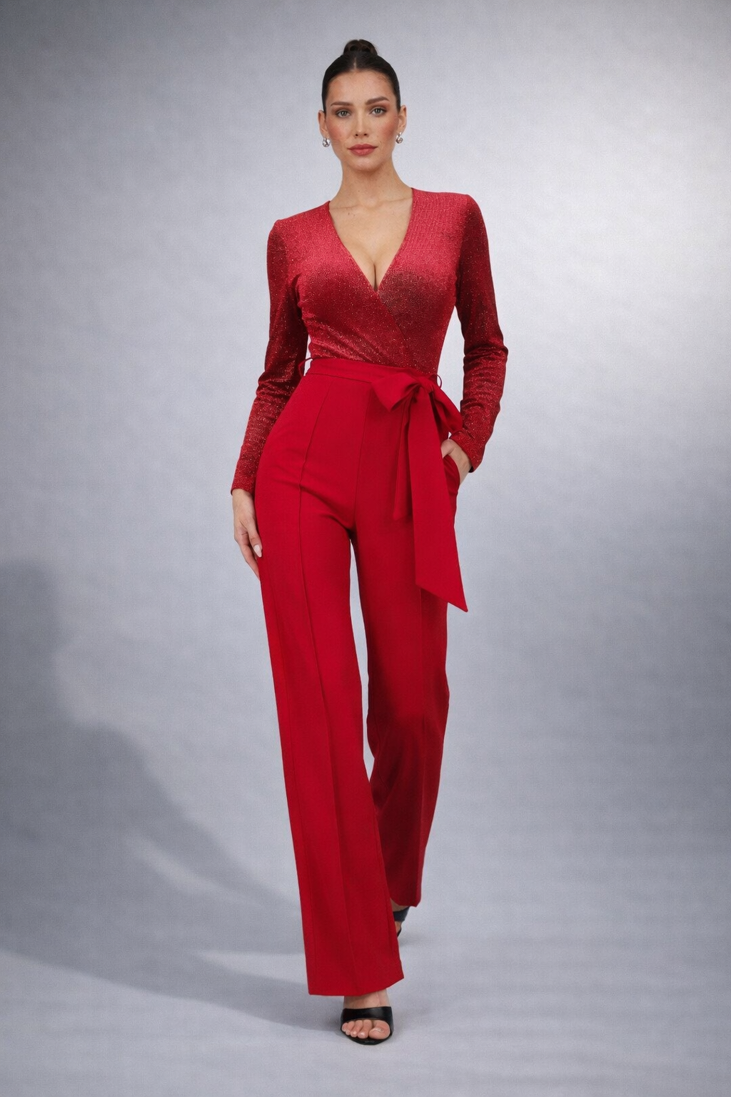 Jumpsuit en color rojo con brillos y terciopelo