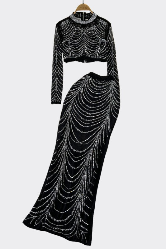 Set de top y falda en brillos.