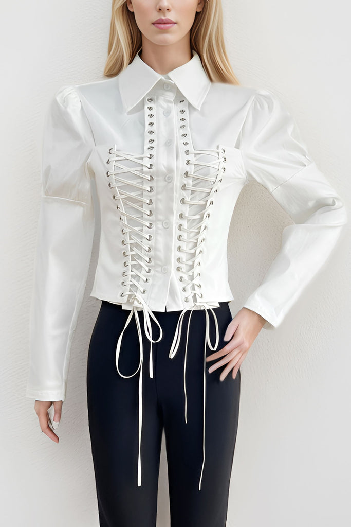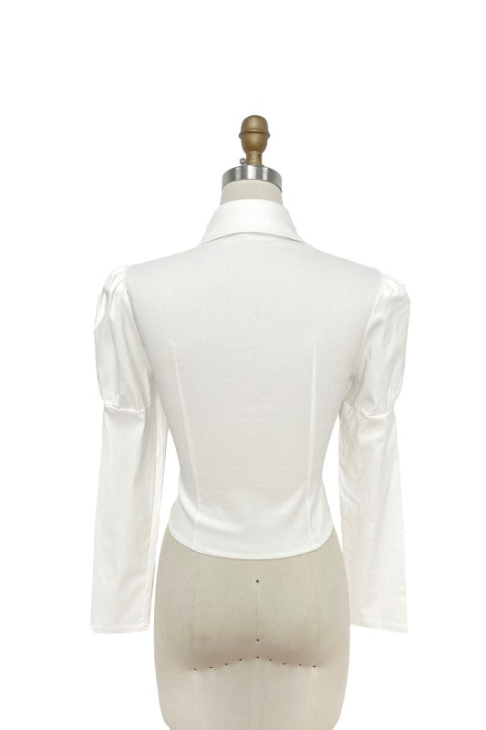 • Camisa en color blanco con detalles tipo bustier al frente.