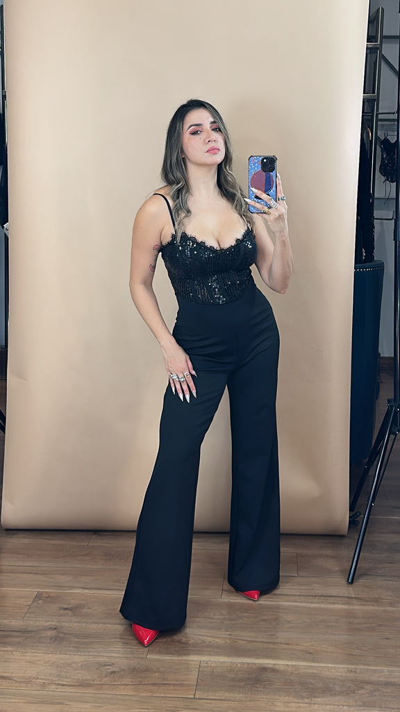 la parte superior es tipo corset y la espalda semidescubierta, tirantes delgados y ajustables, cierre en ganchos por la espalda.