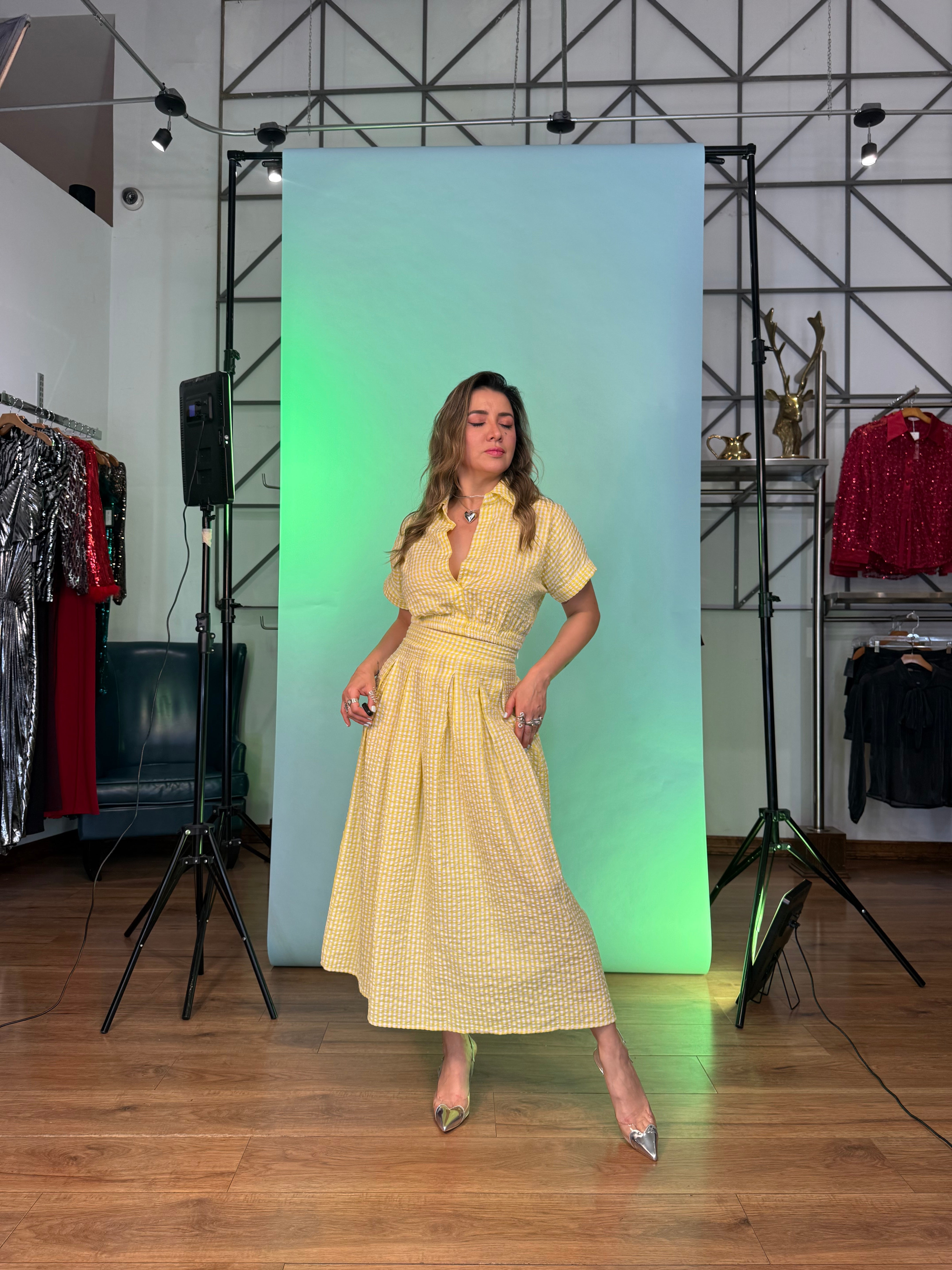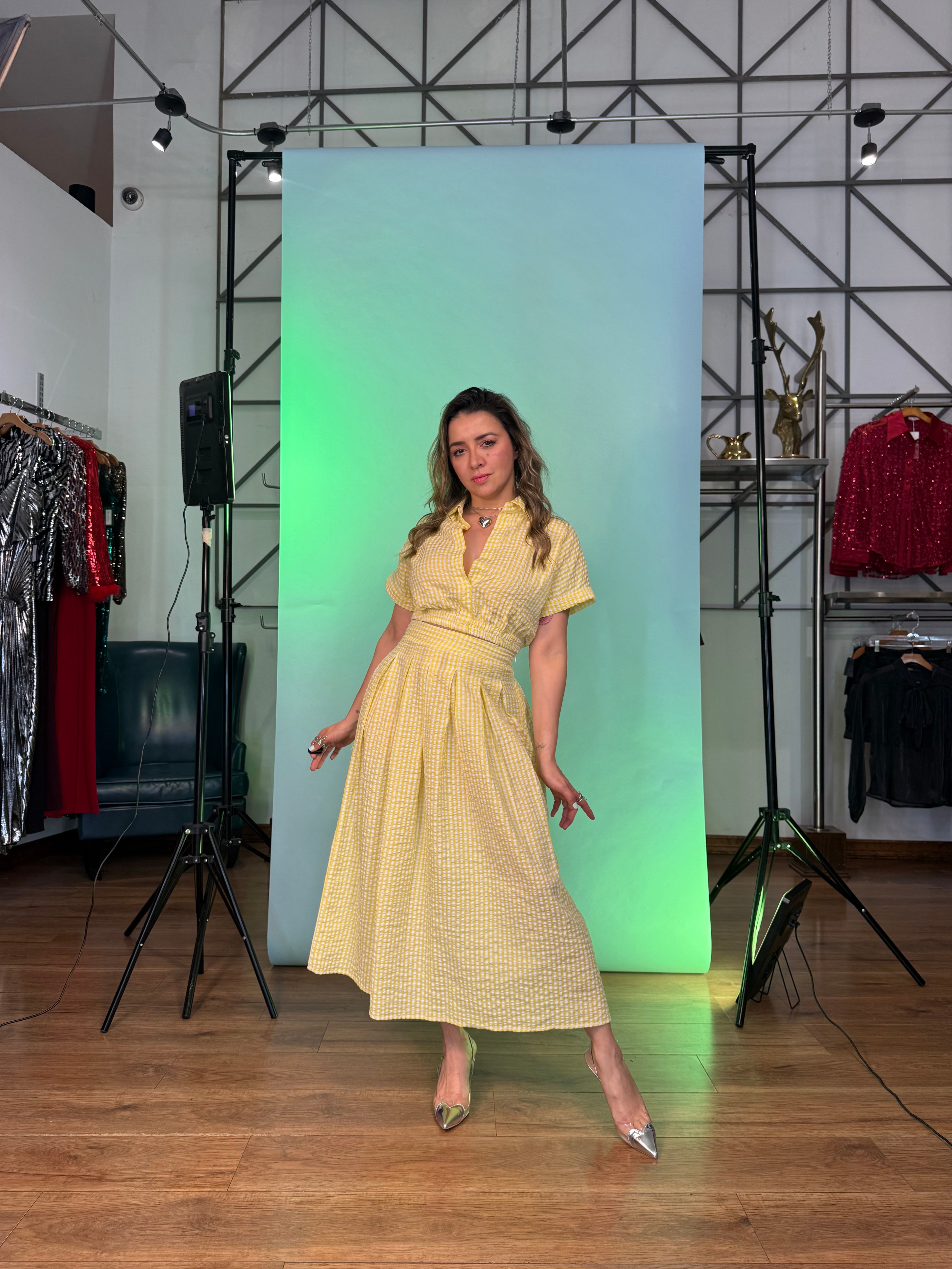 Set falda y top cuadro Vichy- amarillo - M está en espera y se enviará tan pronto como vuelva a estar en stock
