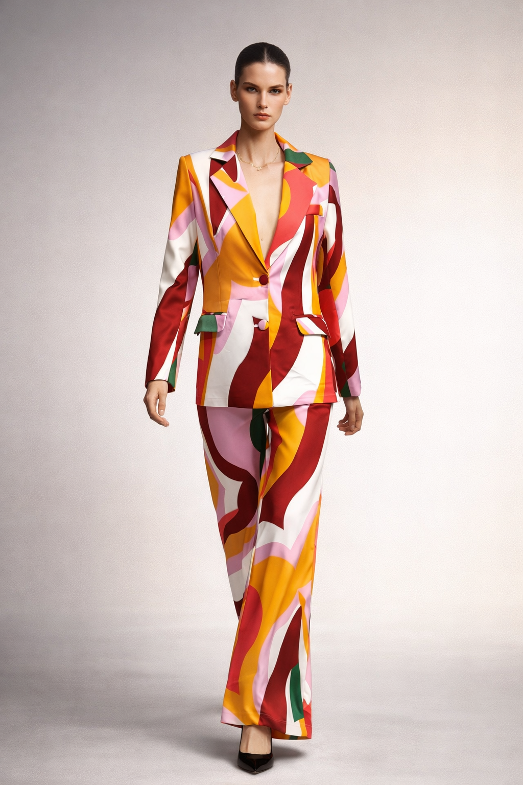 set de blazer y pantalon en multicolor.