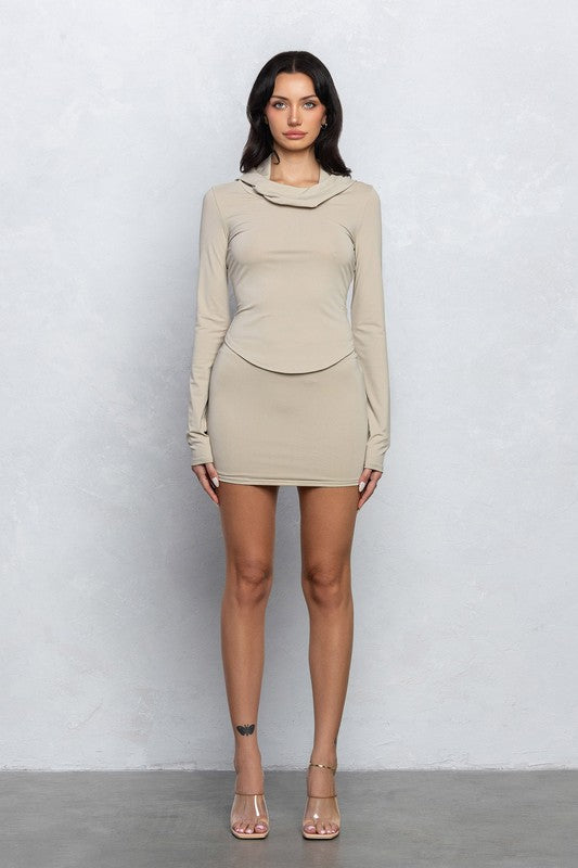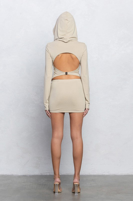 top con cuello y hoodie, mangas largas, espalda semidescubierta.