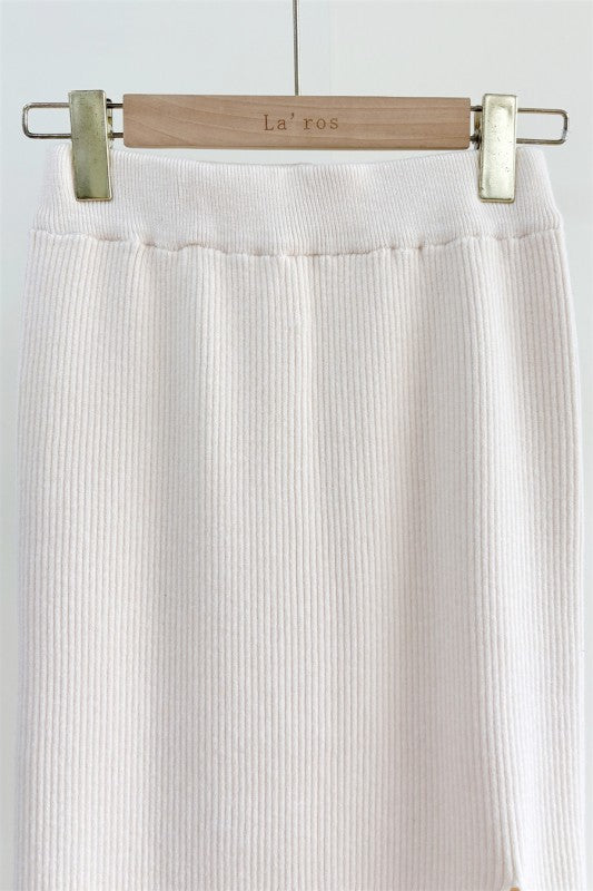 falda midi con abertura a un lado y pretina elastica.