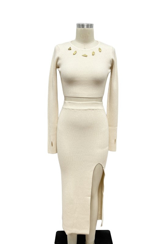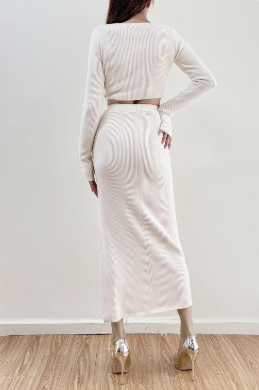 Set de top y falda tejidos en color ivory.