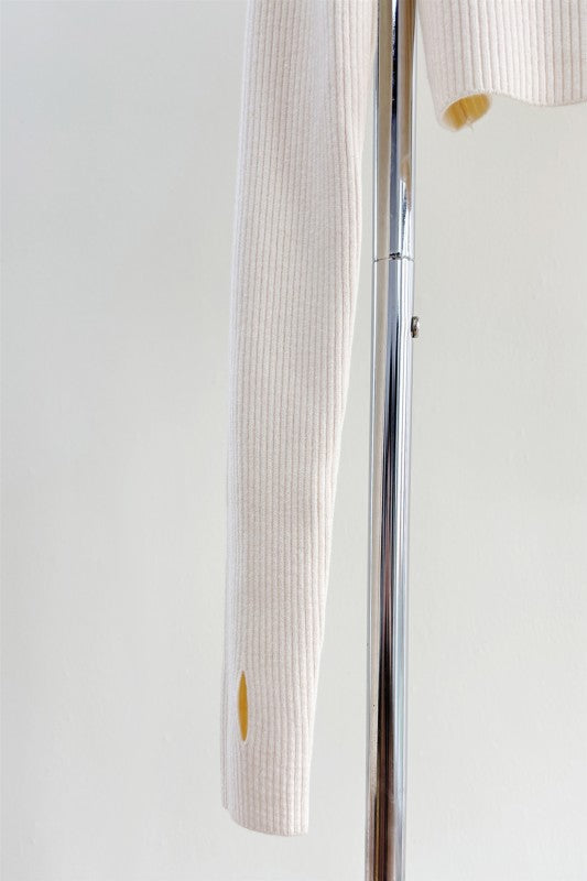 top tipo crop con detalle de broches en el cuello, mangas largas.