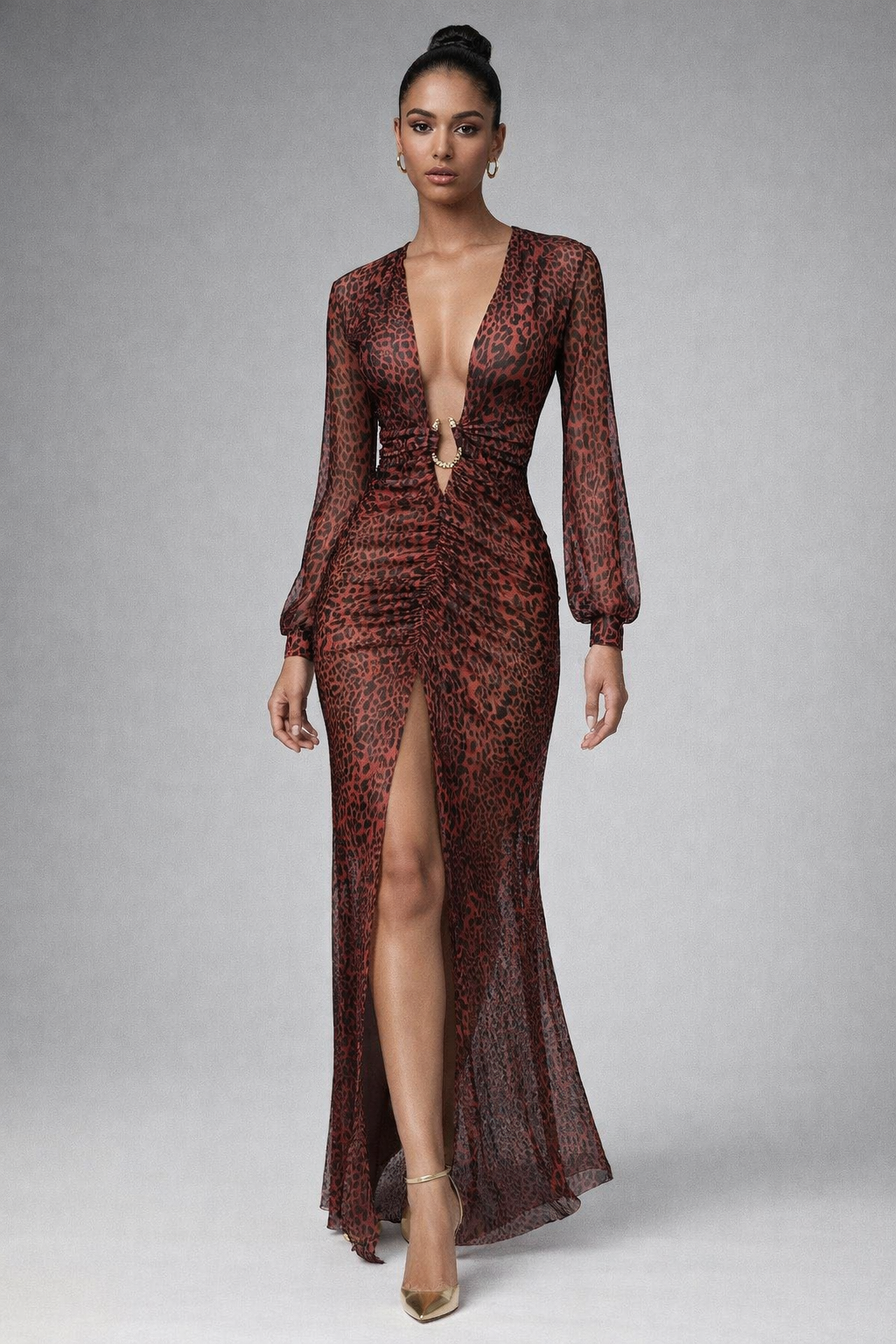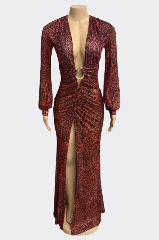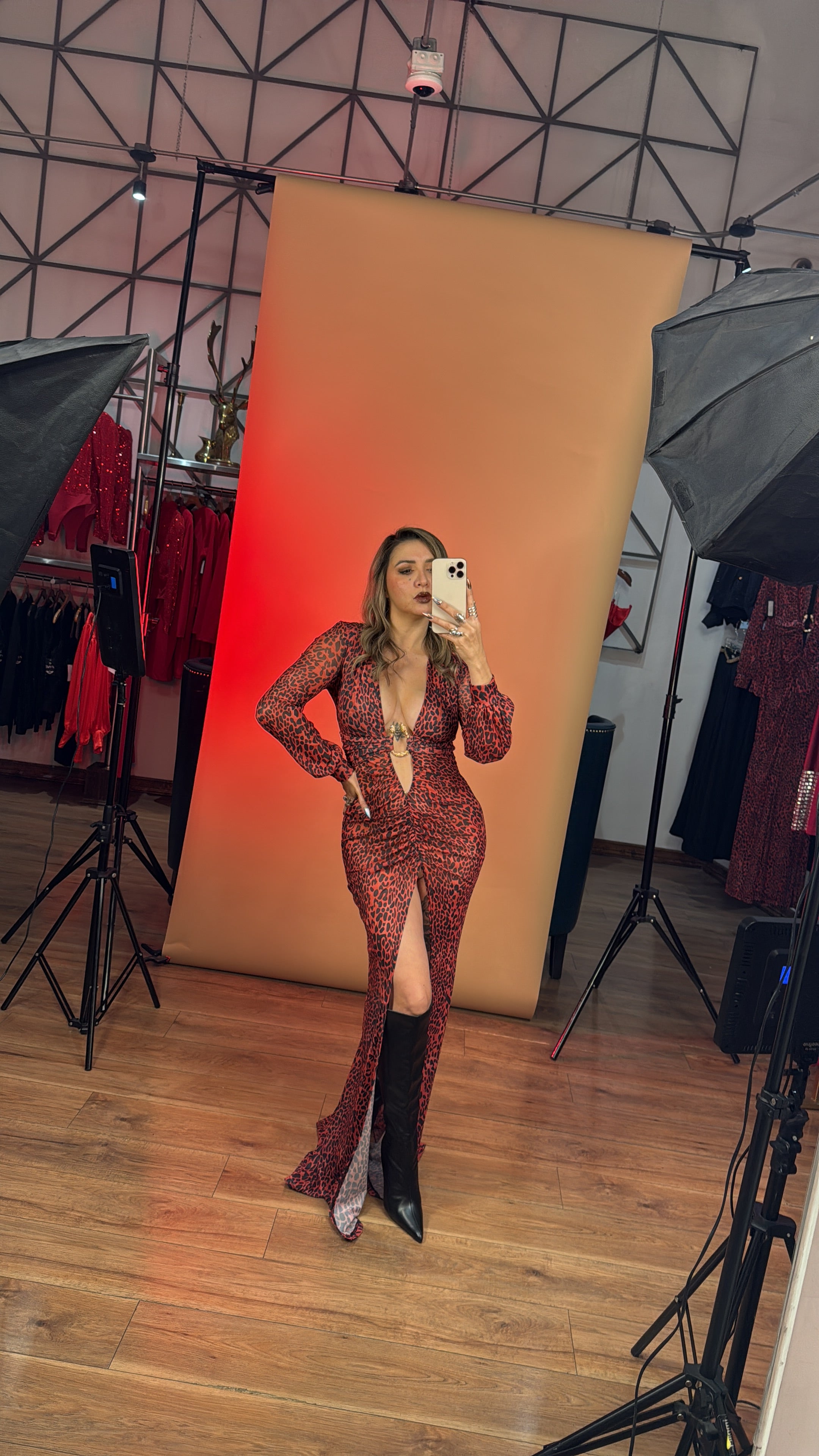escote profundo en v con broche al centro, magas largas holgadas con puños elasticos, frente corrugado con abertura.