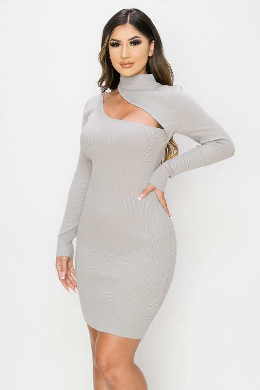 cuello alto y mangas largas con abertura al frente a nivel de pecho.