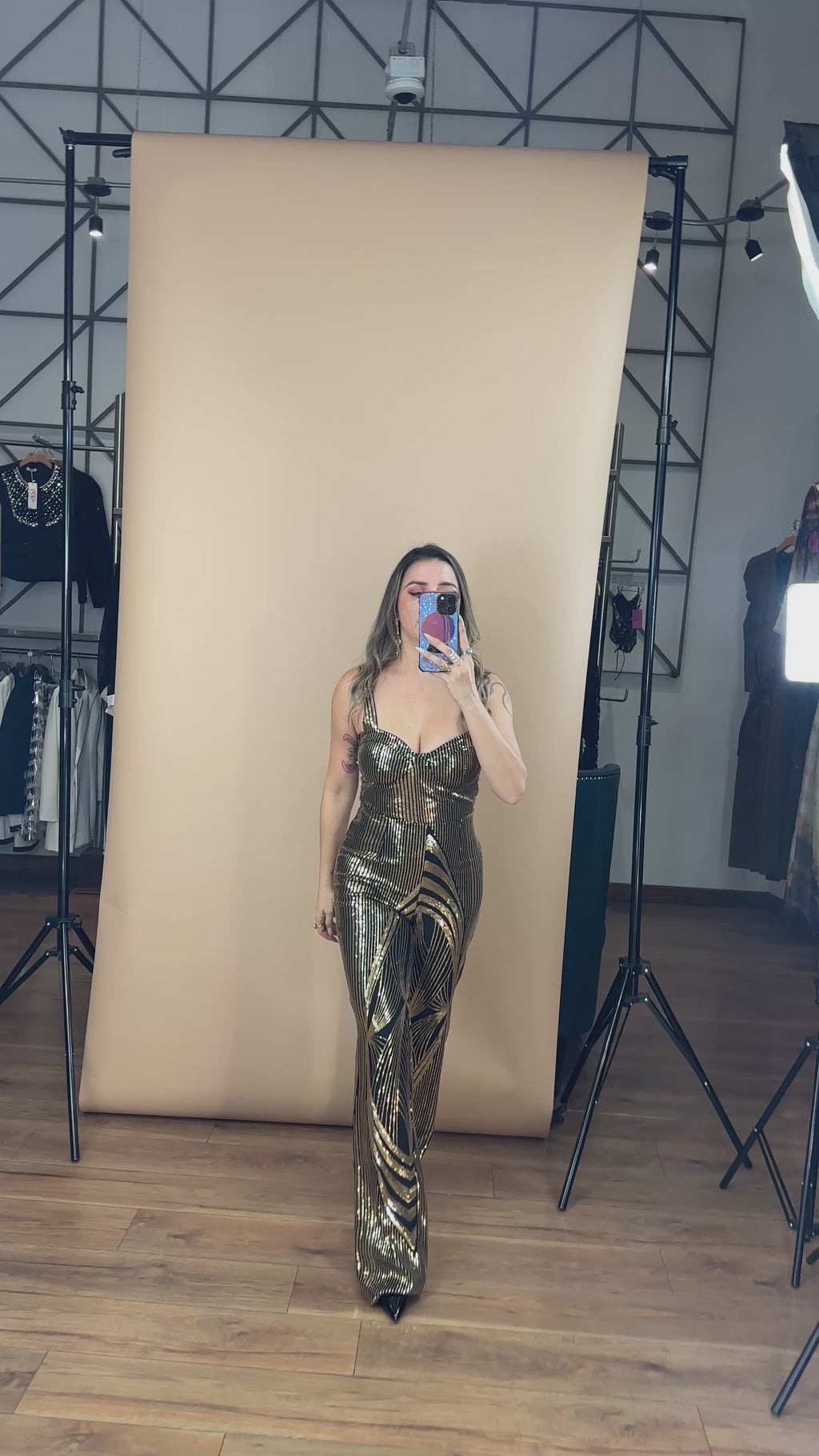 Escote en corazón con tirantes gruesos y cierre por la espalda.