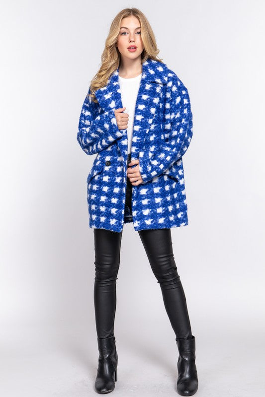 Abrigo a cuadros en blanco y azul.