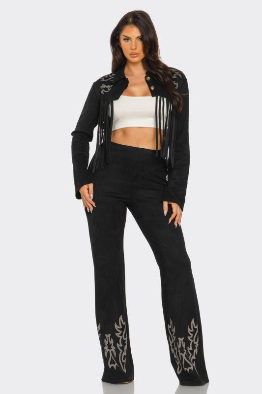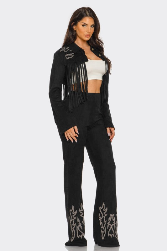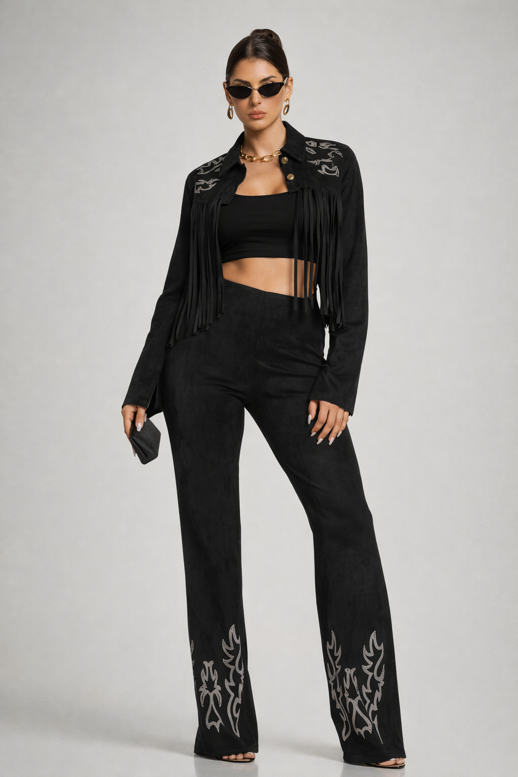 pantalon a la cintura con corte recto y print en la parte inferior.