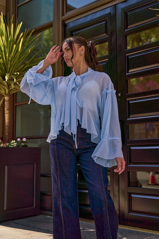 Blusa en color azul con transparencia.