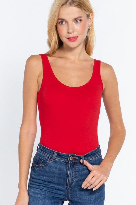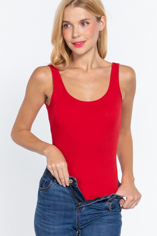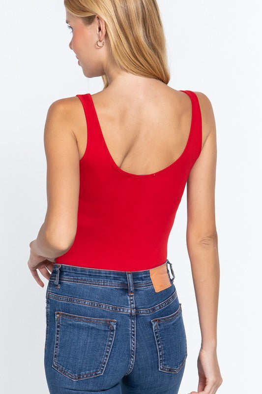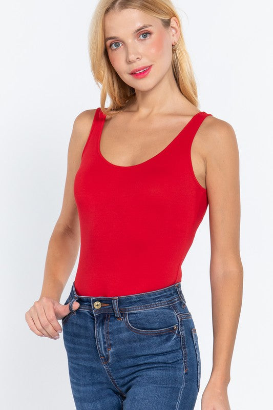 cuello redondo con tirantes gruesoso y cierre a presion por la parte inferior.