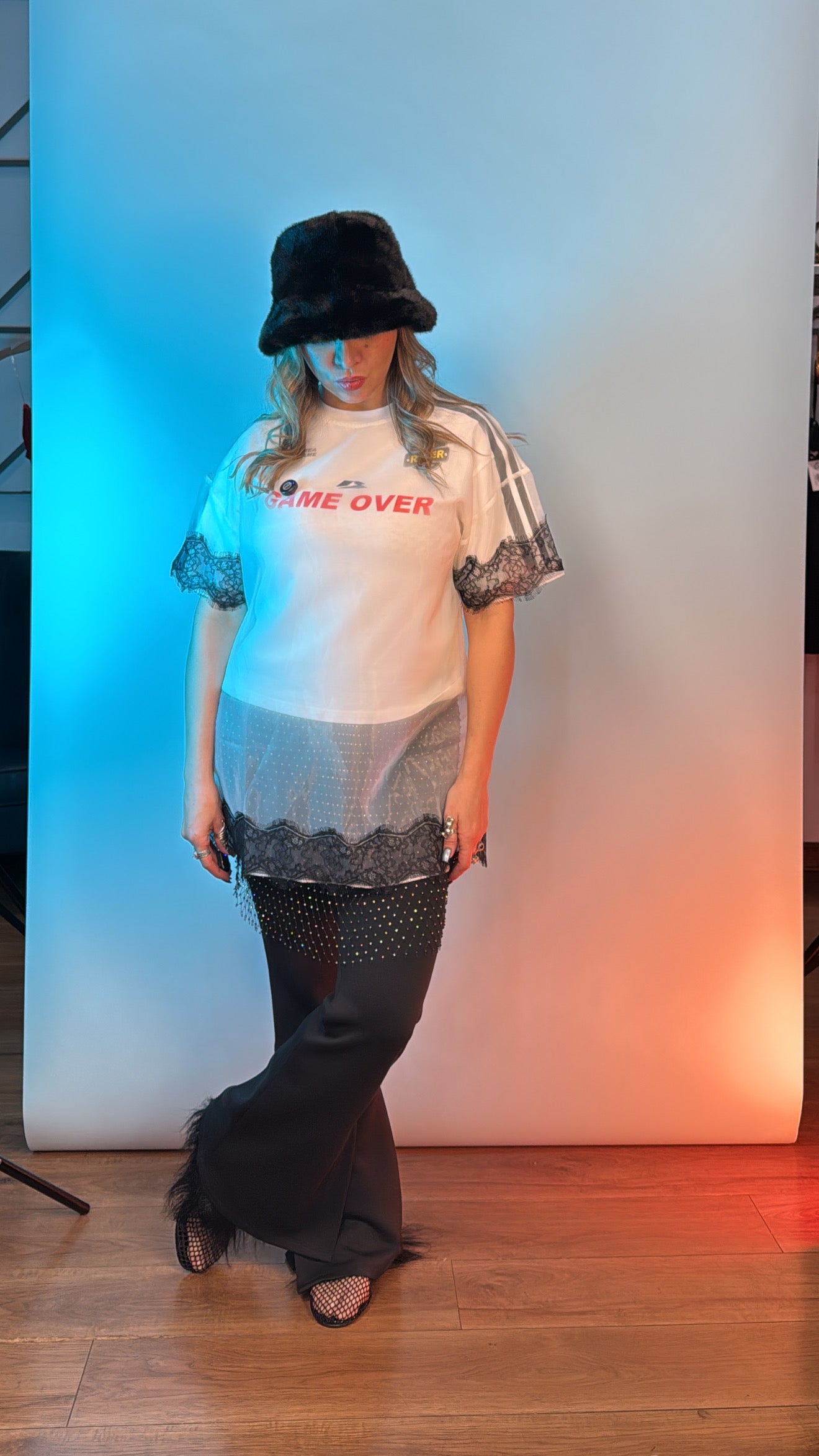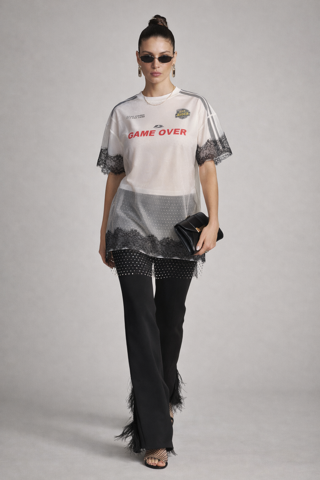 blusa doble deportiva blanca con diseños alusivos al deporte, blusa en transparencia color blanco.