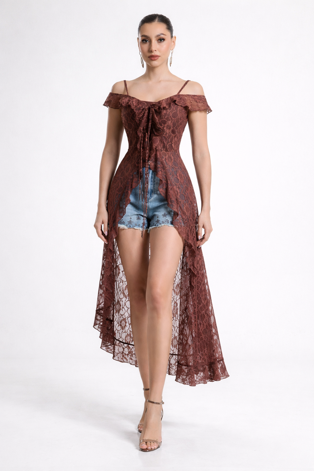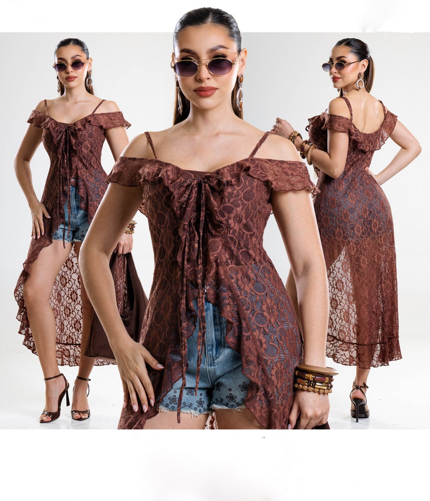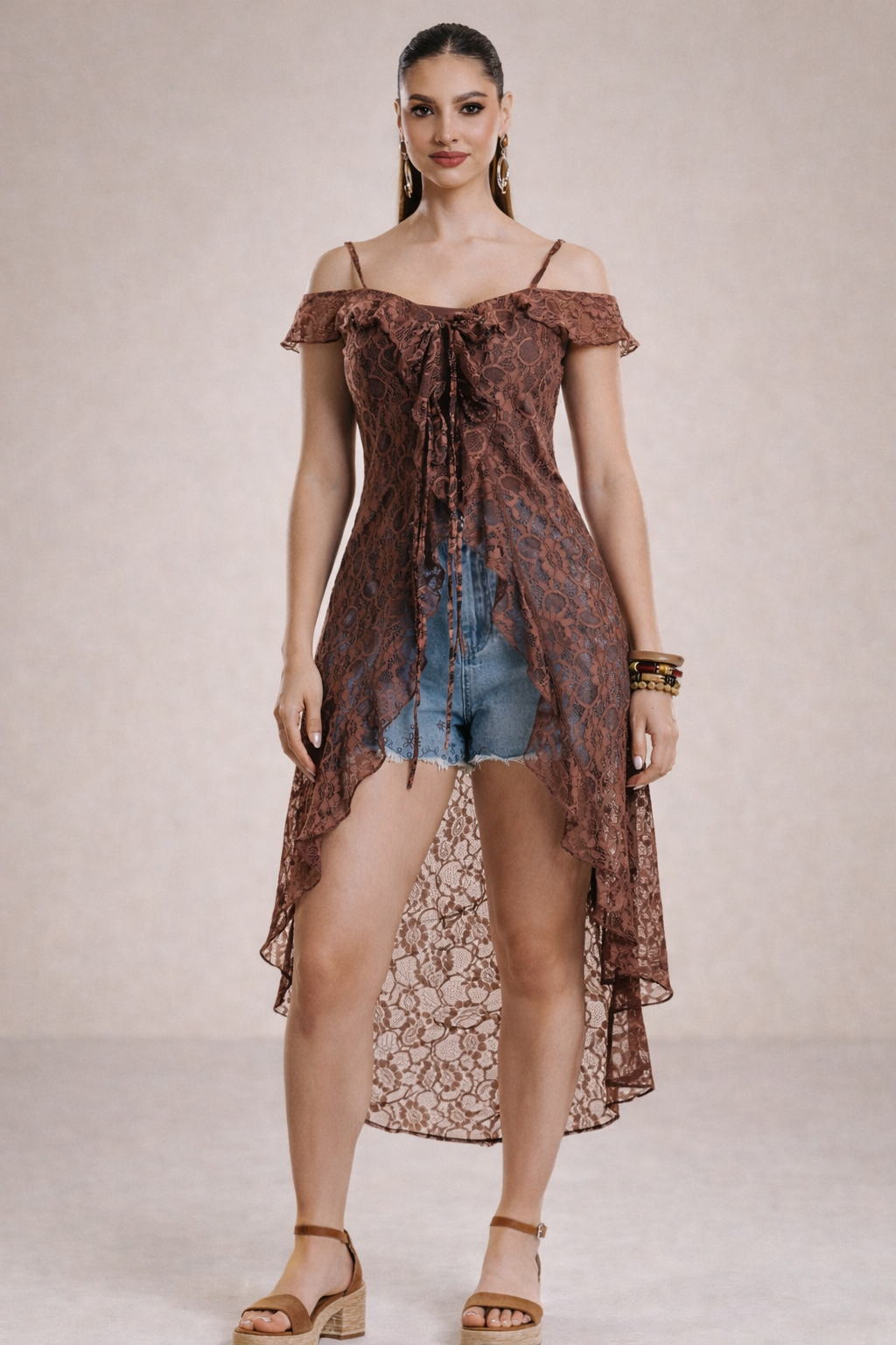 Blusa larga encaje Doriana-cafe - CH está en espera y se enviará tan pronto como vuelva a estar en stock