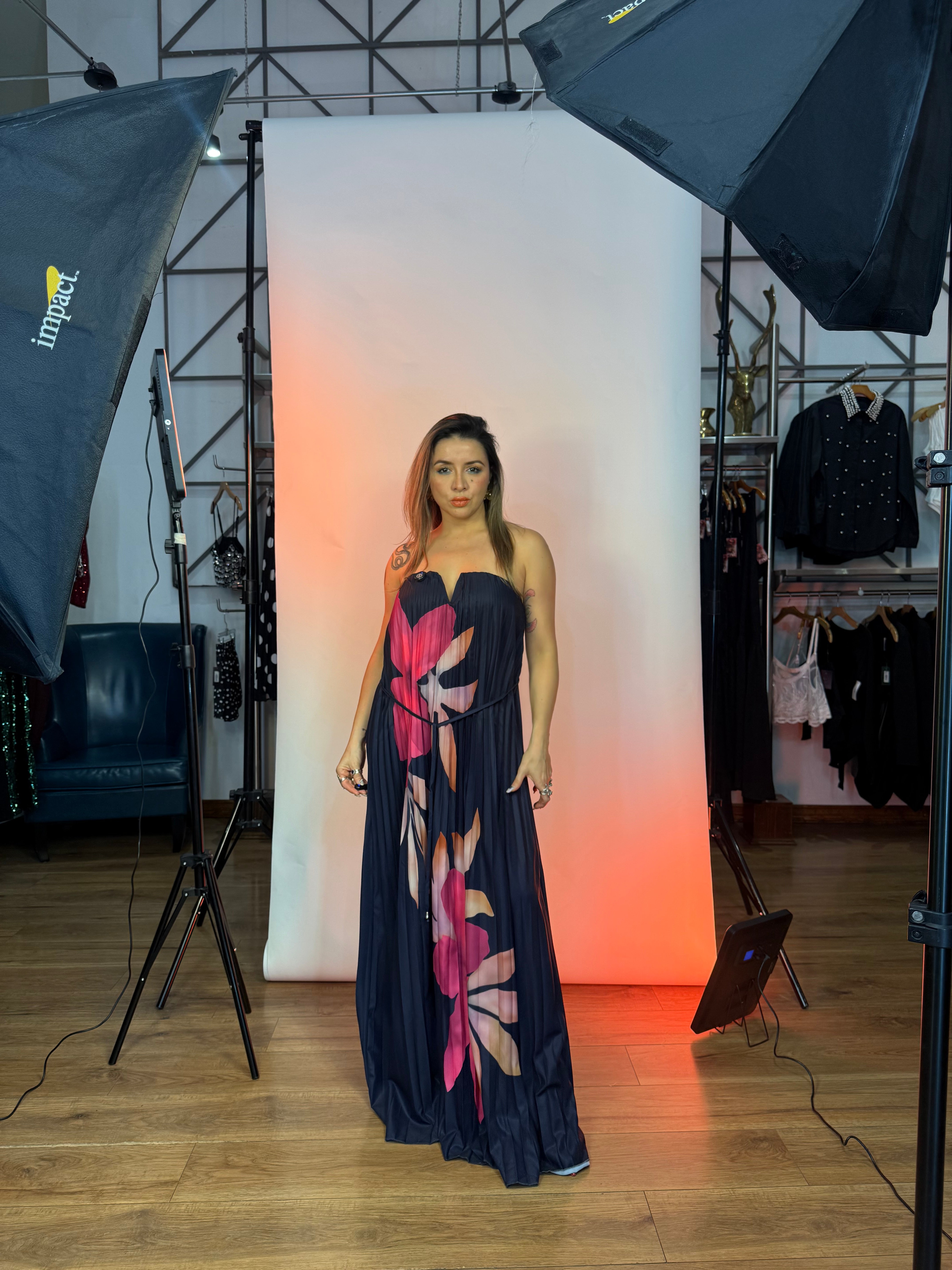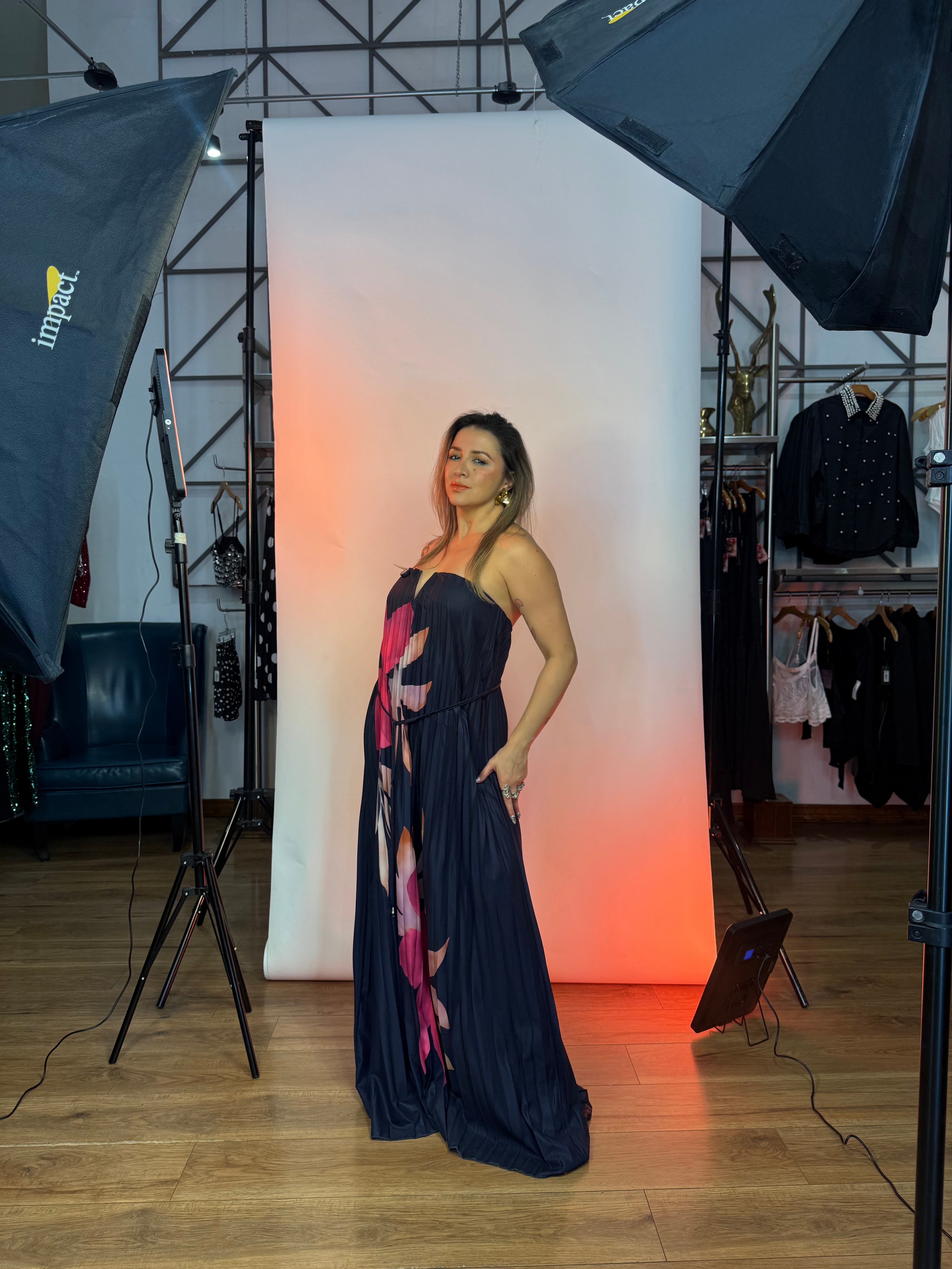 Vestido tableado Straple Corintia- Navy - CHM está en espera y se enviará tan pronto como vuelva a estar en stock